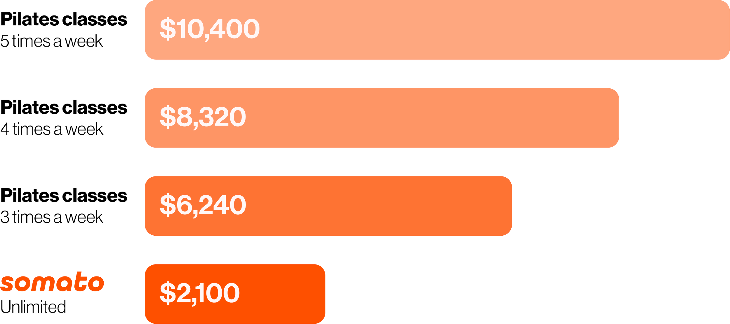 At $40 a class, studio Pilates adds up fast. With Somato, you’re making an investment in your health and well-being that pays for itself in no time—giving you the freedom to move, stretch, and strengthen whenever you want.